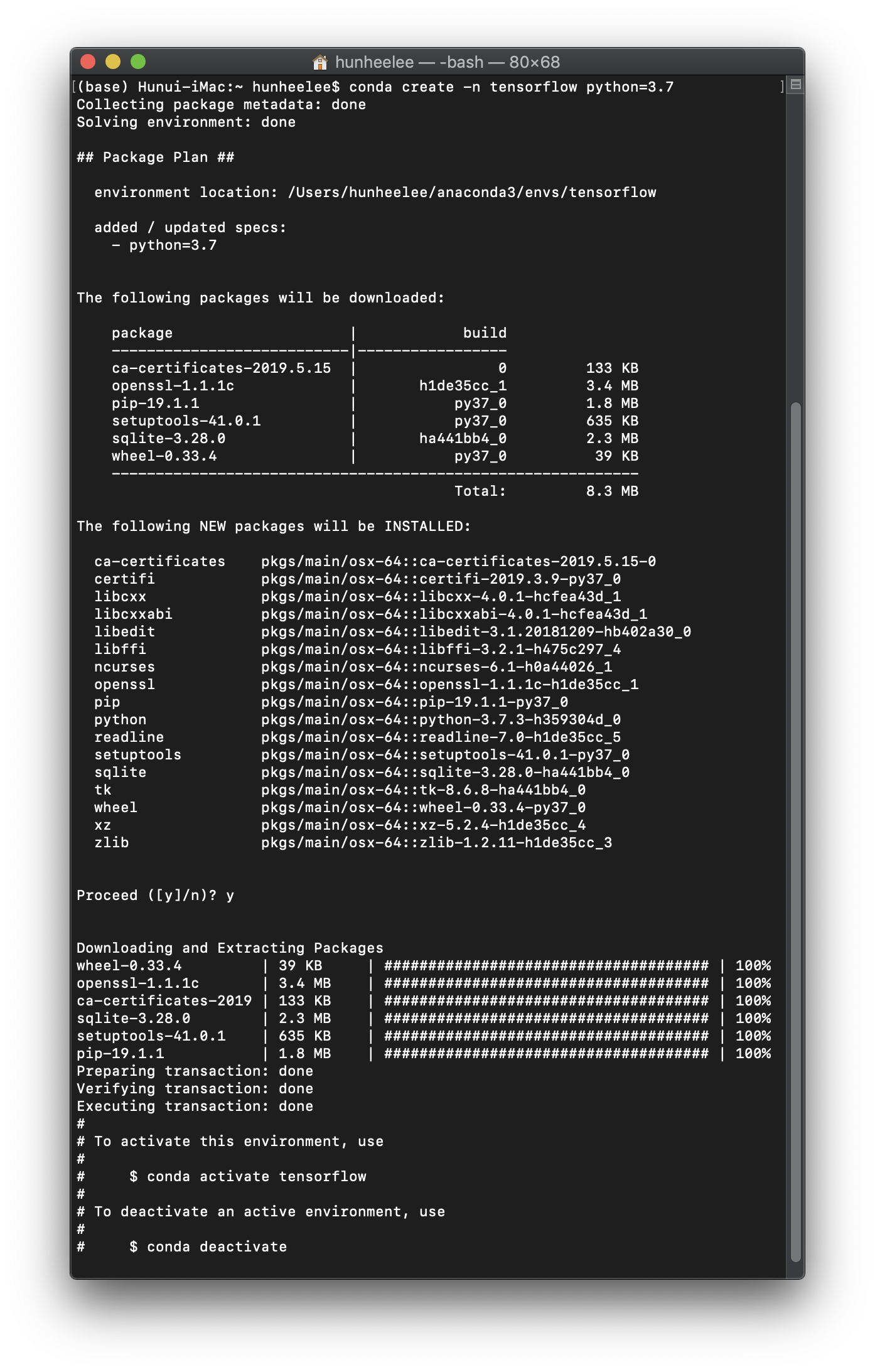 // 저는 환경의 이름을 tensorflow 라고 만들어 주겠습니다.
