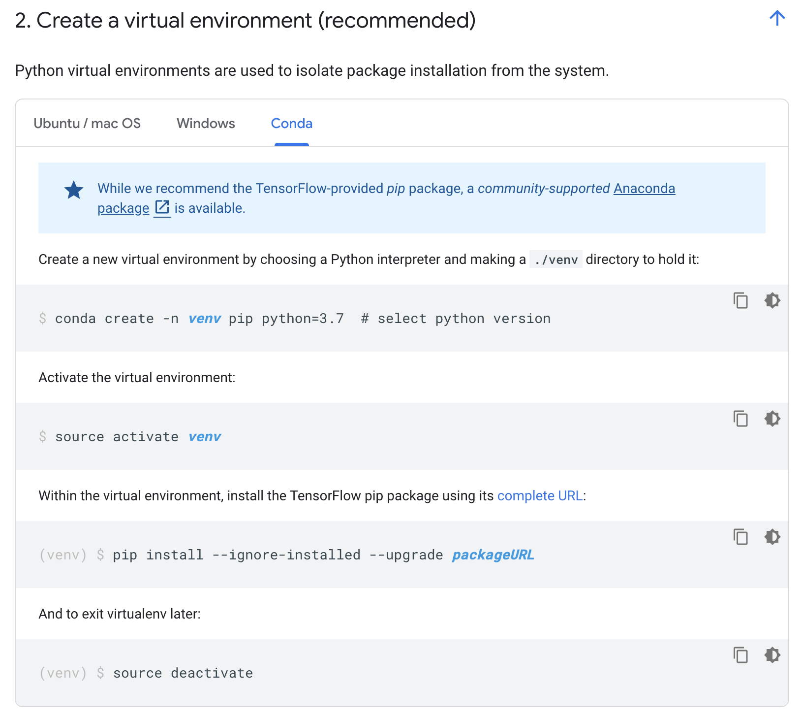 먼저 텐서 플로우 설치 페이지로 갑니다.